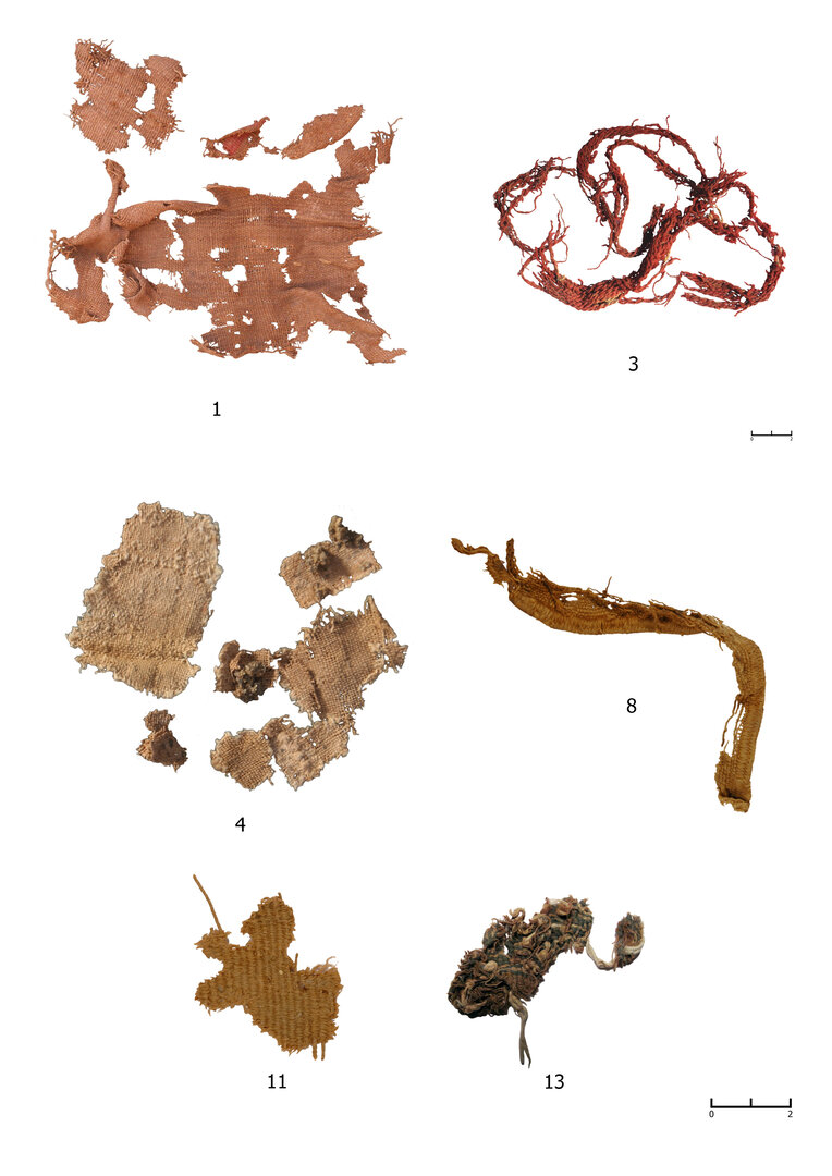 Remarks the largest fragment has a straight stitch made using a beige 2-ply yarn (Z2s, th. 0.1 cm); the smallest fragment has a red band 0.8 cm wide