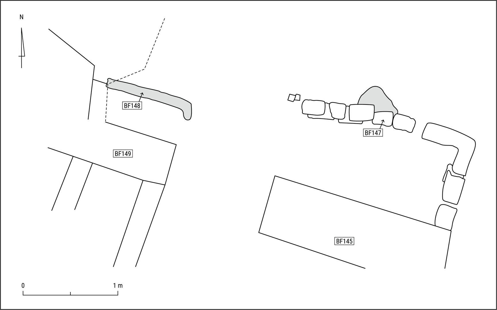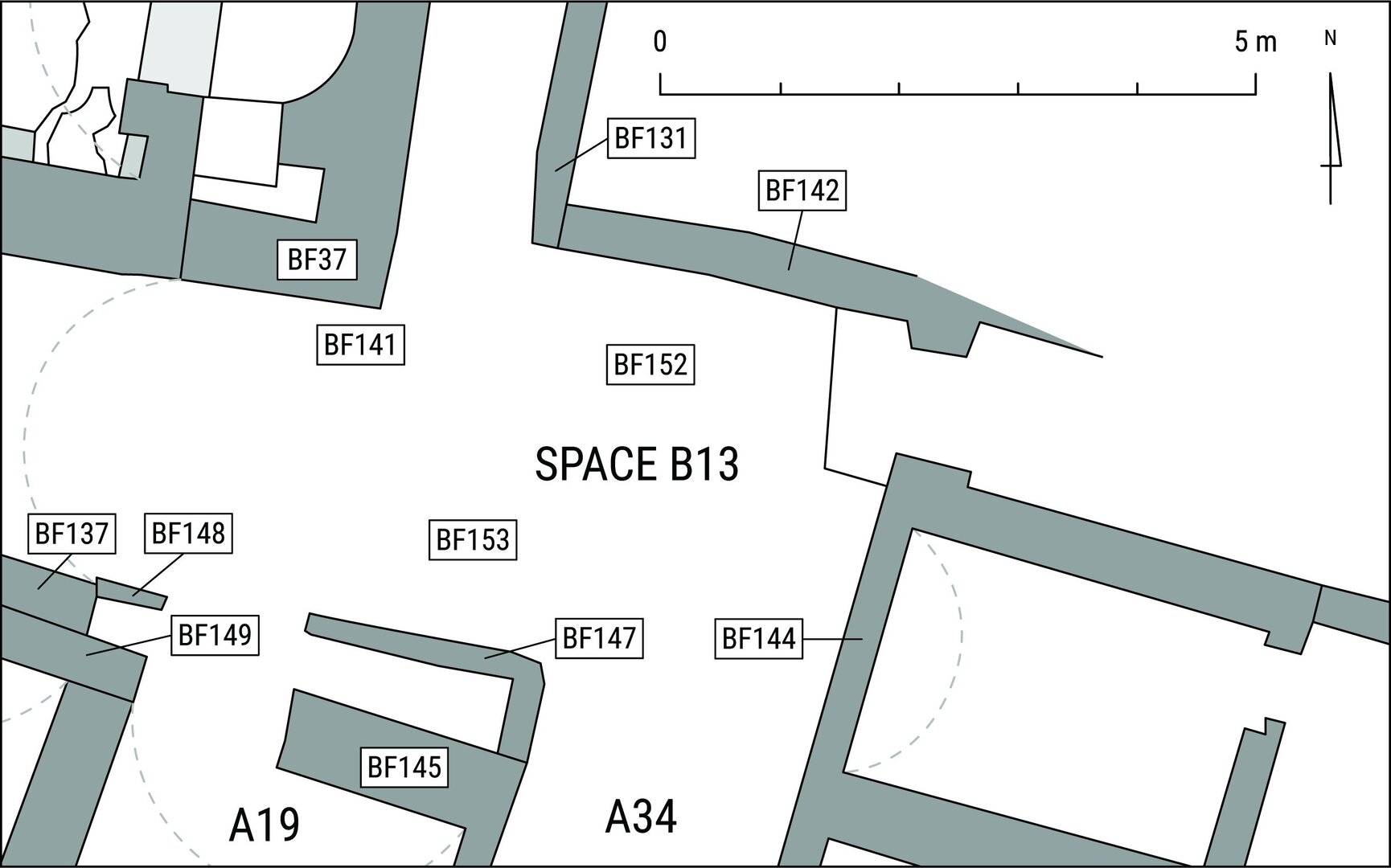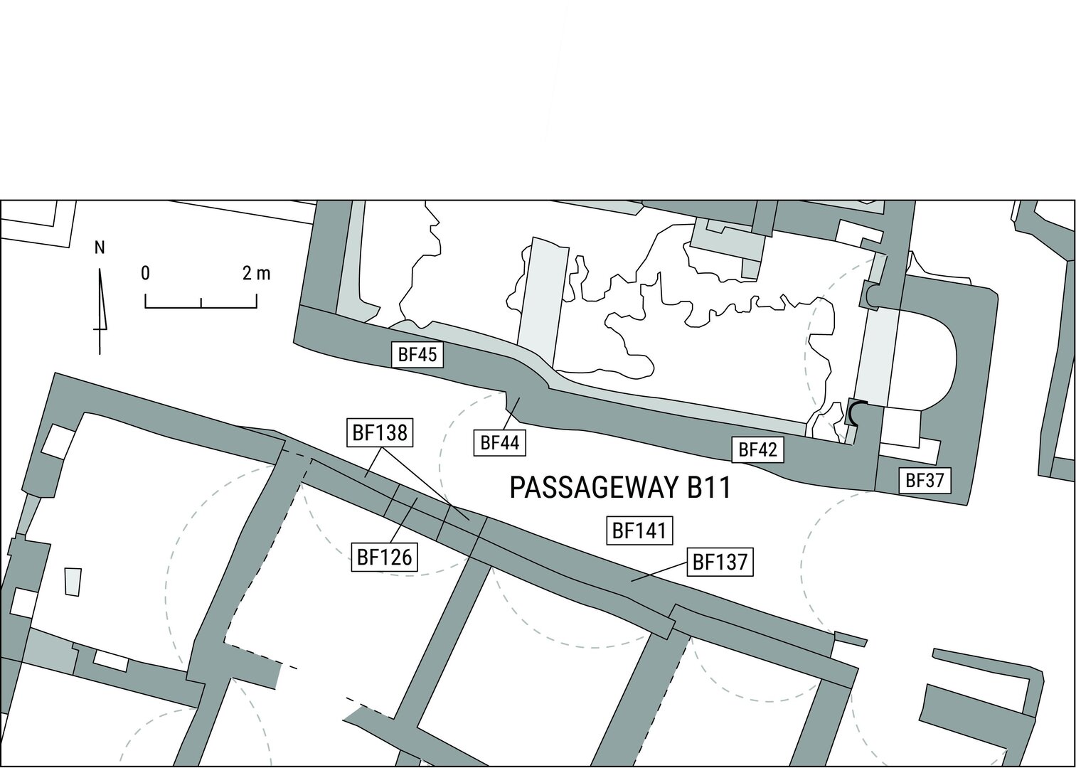 Of which some remains are still visible on BF164 (north wall) and BF158 (south wall): these are BF166 and BF159 respectively.↩︎