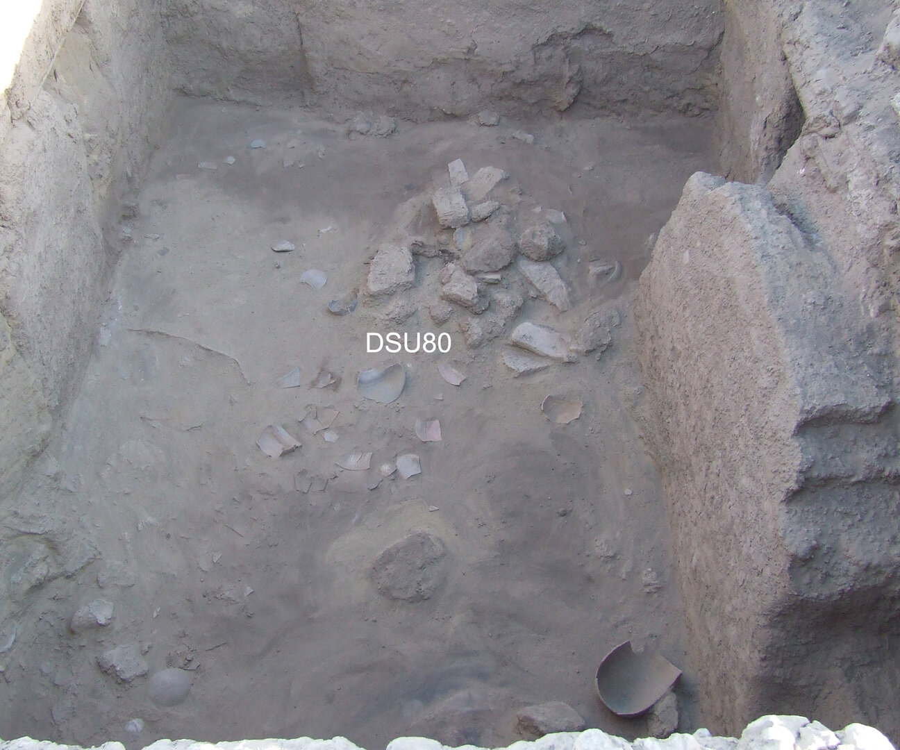 Below DSU80 was the fill (DSU81)14 of the circular clay hearth (BF109) set near the southeastern corner of the room. It consisted of ash, a few lime spots, and a limited amount of potsherds (0.05 kg).