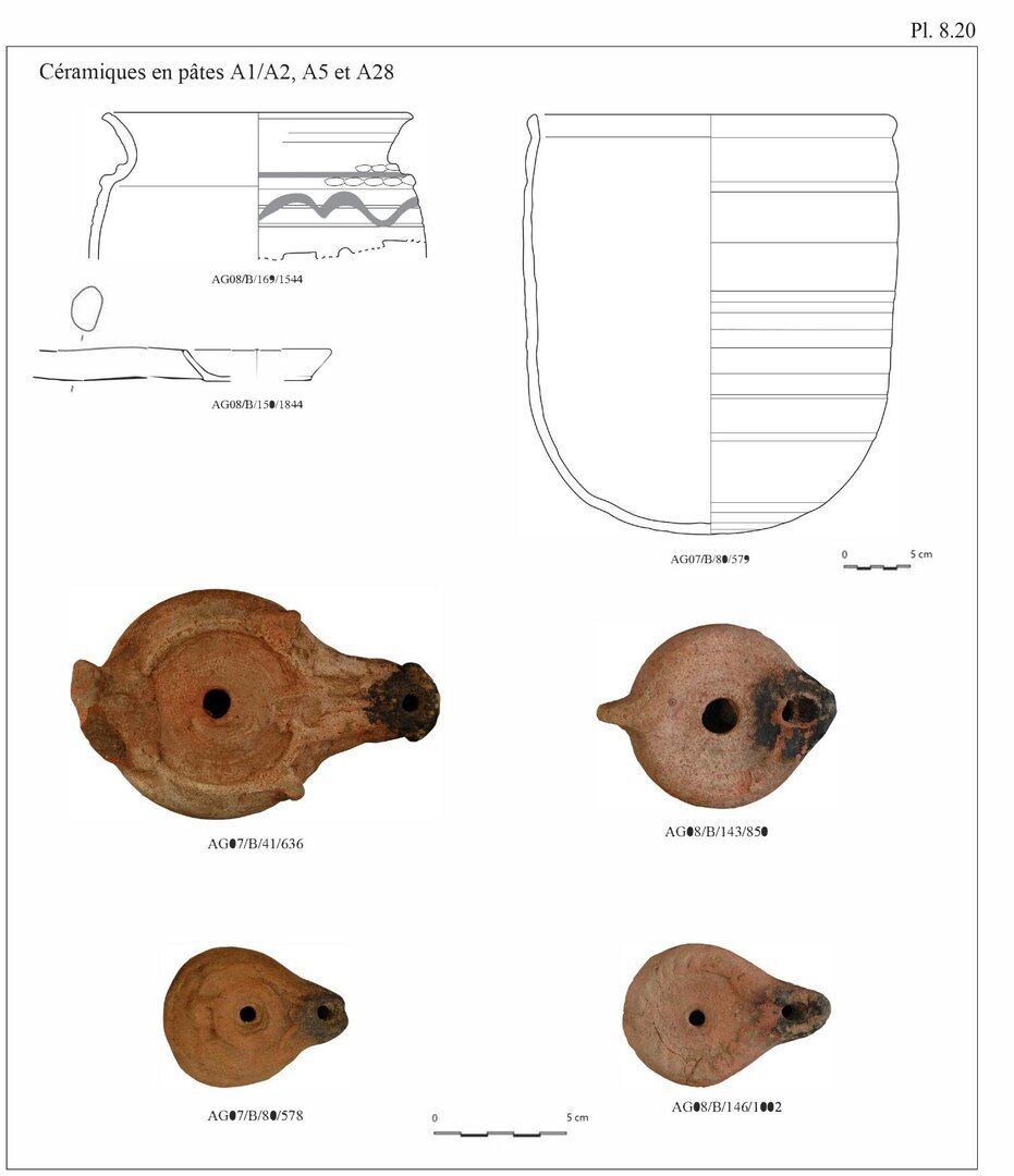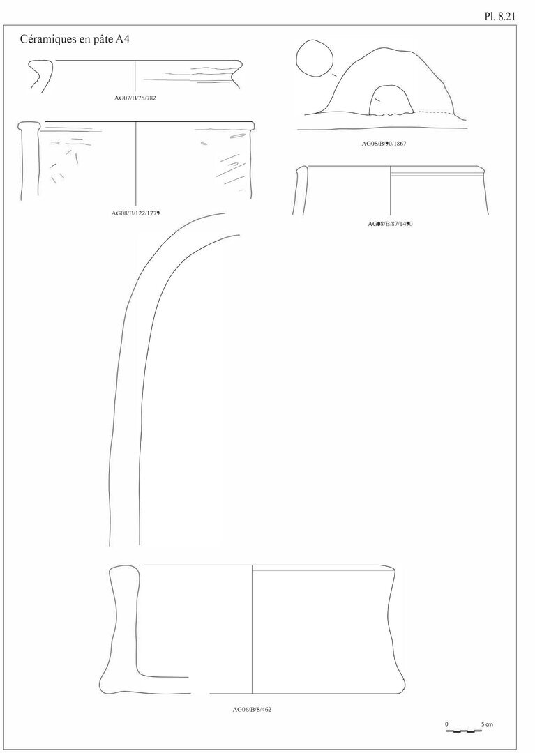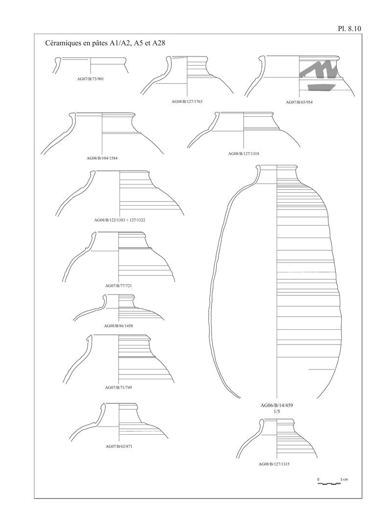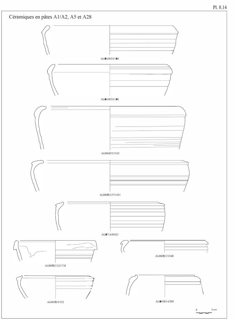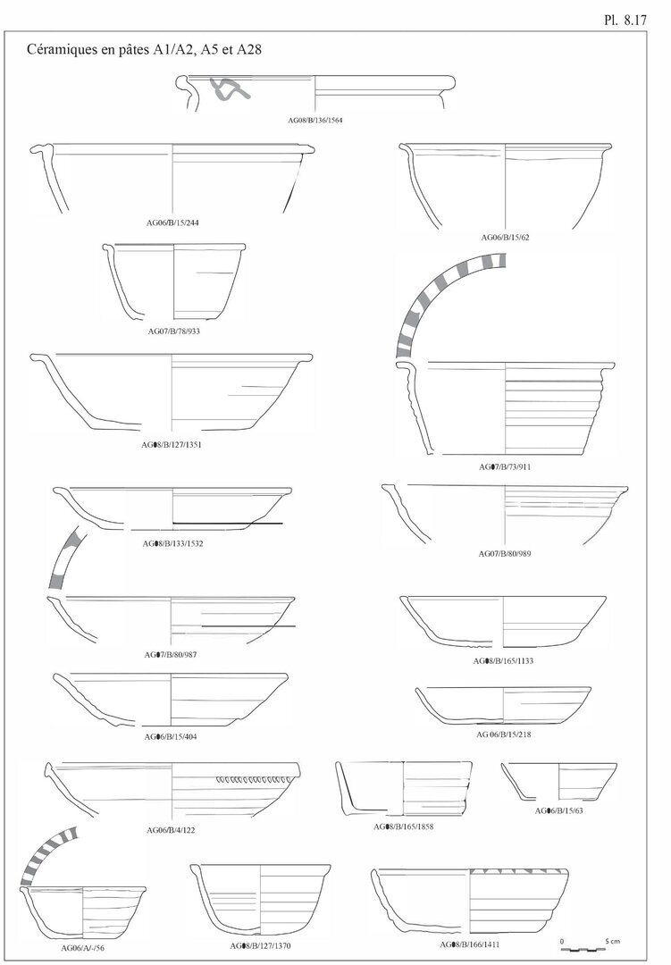 Ayant choisi une présentation du catalogue suivant les différentes productions observées sur le site d’ʿAin el-Gedida, les pâtes seront décrites en début de catalogue pour chaque groupe de production.↩︎