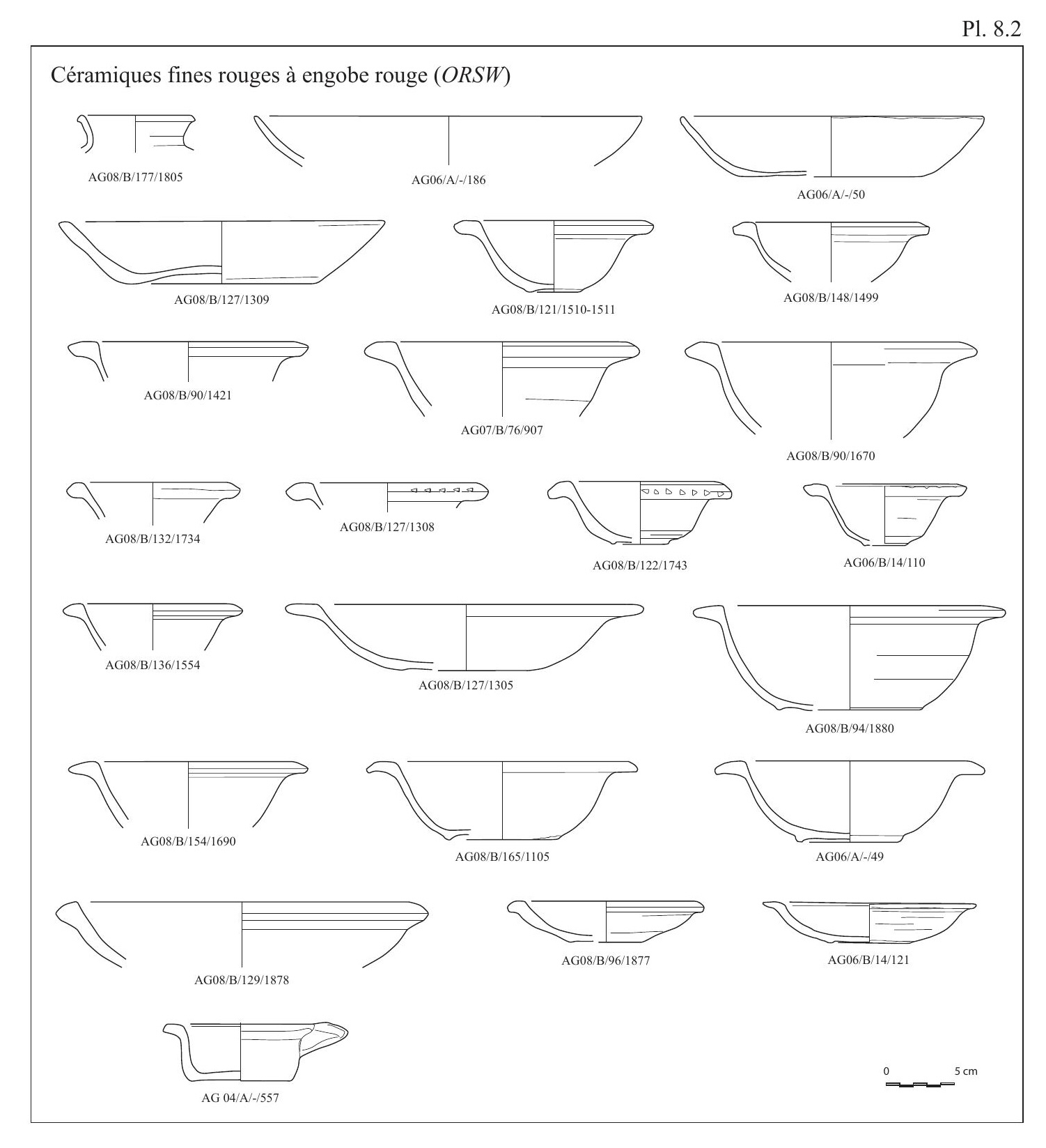 Les importations originaires d’Afrique du Nord sont très limitées et se résument à un seul individu, à savoir la forme Hayes 50A dont la diffusion en Égypte concerne avant tout la période comprise entre le milieu du iiie et le début du ive siècle19 (Plate 8.1).