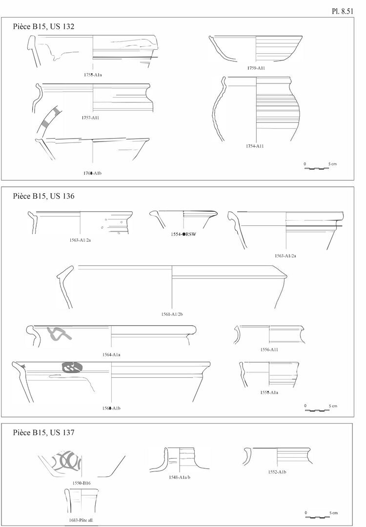 Seules les pièces et les US présentant un matériel céramique significatif et suffisamment caractéristique seront présentées dans le cadre de cette contribution.↩︎